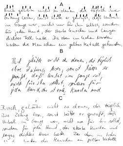 Bei routinierten Schreibern läuft der Schreibvorgang automatisch ab, sie schreiben immer schnell, flüssig und scheinbar mühelos. Wegen der hohen Bewegungsgeschwindigkeit können automatisierte Bewegungen auch nicht mehr bewusst gesteuert werden. Beim Laufen, Greifen, Rad fahren oder anderen automatisierten Abläufen ist das ganz ähnlich. Sind diese noch nicht automatisiert, werden sehr viele Aufmerksamkeitsressourcen zur Ausführung der Bewegung beansprucht. Routiniertes Schreiben zeichnet sich vor allem durch die automatisierte schnelle bzw. flüssige Bewegungsausführung und durch einen gleichmäßigen Schreibrhythmus aus.